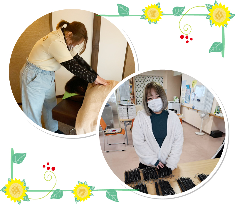 事業所に来て前向きにもなれたし、揉みほぐしもしながら楽しく過ごせている。